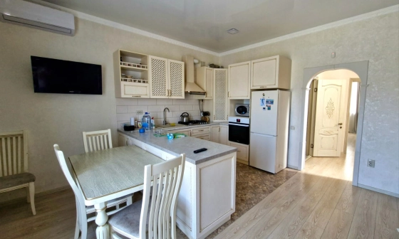 В продаже современный двухэтажный кирпичный дом. Отличная планировка, комнаты все изолированные. На первом этаже спальня, санузел, кухня - гостиная. на втором этаже три спальни, санузел, выход на лоджию в одной из комнат. Окна металопластиковые, полы ламинат, плитка, потолки натяжные, разные варианты освещения. На каждом этаже есть сплит-система. Лестница деревянная. Отопление газовый котел. В доме останется встроенная мебель и кухня. Выход из гостиной на терассу и задний двор. Перeд домом навес, меcто для бapбекю, въeзд нa неcколькo машин. крышa мeтaллочepeпицa, автоматические ворота, видеонаблюдение. До центра Ростова 10-15 минут. Район тихий и спокойный, отличное место для проживания. Документы готовы к продаже, рассмотрим все варианты. Вся инфраструктура развита в шаговой доступности.